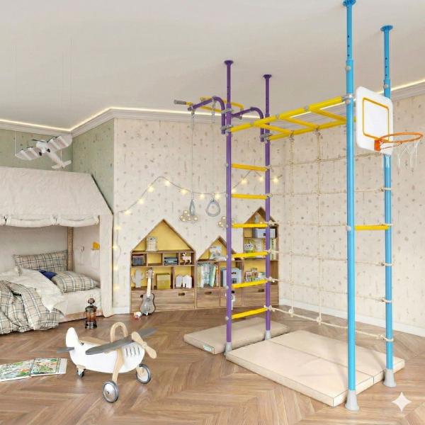 Complex șpalier suedez tip insulă multifincțional din metal pentru copii - gimnastică și cățărat - interior