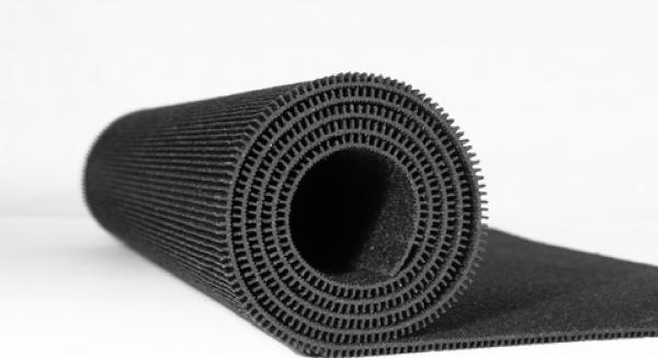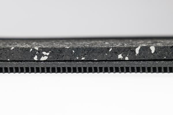 Acest strat suport elastic este conceput pentru reducerea zgomotului, vibrațiilor și șocurilor, fiind utilizat ca strat inferior sub diverse tipuri de pardoseli sportive sau rezidențiale. Produsul este livrat sub formă de rolă de 1,2 × 10 m, având o greutate de aproximativ 35 kg / rolă. Datorită masei sale și structurii speciale, materialul contribuie la amortizarea eficientă a vibrațiilor și a zgomotelor de impact. Structură specială pentru amortizare Partea inferioară a materialului este prevăzută cu o structură tip grilaj (nervuri), care creează canale elastice și spații de aer.