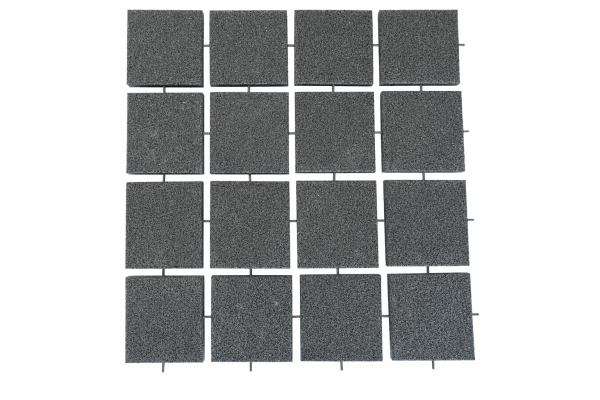 Pentru rezultate optime, știftul de cuplare este recomandat numai în cazul instalării dalelor de cauciuc alveolare. Știftul de cuplare din poliamidă este conceput special pentru a evita deplasarea dalelor de cauciuc. Pe părțile opuse sunt aplicate câte 4-4 bucăți de gaură de 8 mm diametru. Cu ajutorul găurilor de montaj și a știfturilor, dalele de cauciuc se încastrează între ele, fiind astfel montarea extrem de practică. Dacă este necesar, pot fi foarte ușor demontate și montate în altă parte.